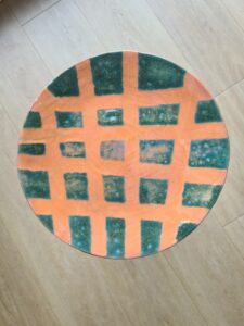 Rankų darbo keraminė lėkštė „Dryžuota“